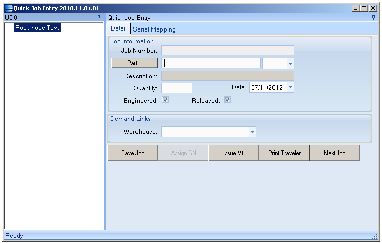 - The fields on the UI panel are filled (not unlike standard Quick Job Entry).
