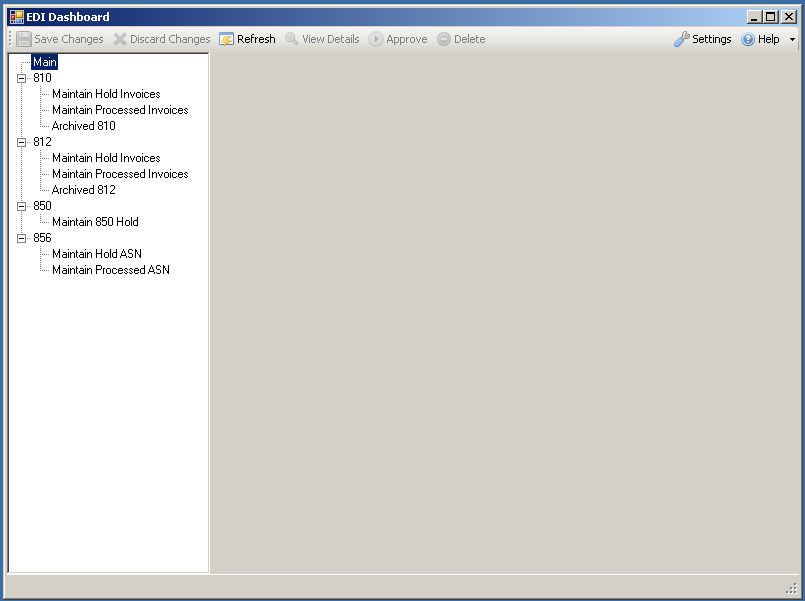 When you first log in to EDI Dashboard you will see a tree view of each EDI module you have purchased and have rights to view.  From here you will expand the module you wish to work with and then select the node for the operation you wish to perform.