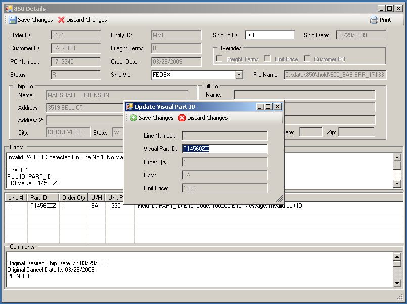 EDI Integrator provides Visual® Enterprise users with a powerful alternative to the VMDI interface for EDI transactions (both inbound and outbound).  Transactions can be reviewed, optionally edited, and approved / rejected individually or in batch using our EDI Dashboard module.  Seamless integration with Visual® ensures absolutely no duplicate data entry is necessary and that all transactions are performed with the same business logic validations as the standard Visual® client.