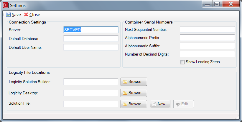 - Solution File: this is the path to the Logicity Solution File to be run when the 'Reports' button is clicked. The options for this file will be discussed in full detail in a separate section.