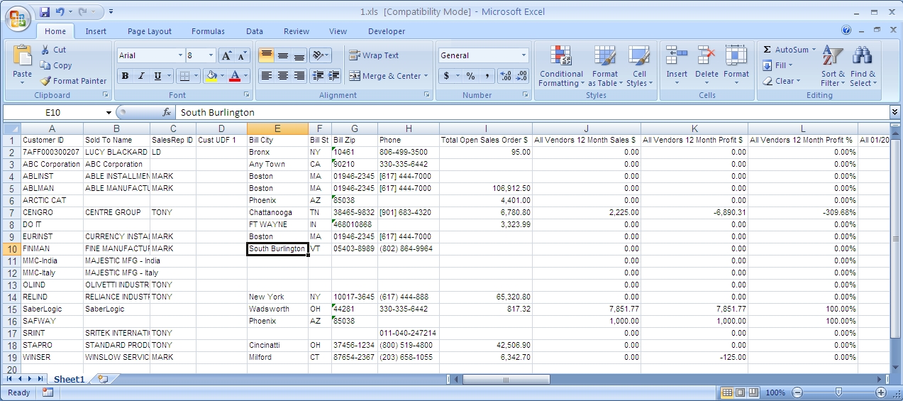 The 12-Month Gross Profit by Preferred Vendor application for Infor VISUAL® Manufacturing ERP / Infor 10 ERP Express creates a rolling 12-month gross profit report by preferred vendor ID (from part maintenance) and customer ID (from the customer order). The resulting data is automatically opened in Excel for analysis.